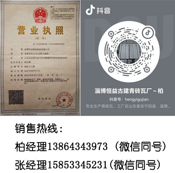 淄博恒益陶瓷制品有限公司位于山東淄博建陶工業(yè)園,有悠久的陶瓷生產歷史,豐富的陶瓷原料資源,交通便利,出門即是205國道,產品繼承傳統(tǒng)工藝生產,并獲得非遺傳承人,產品制作精良,古香古色,健康環(huán)保,經1100度高溫燒成,不褪色。特別是運用了現代真空抽制技術,更是增強了產品的內在和外觀質量,強度更高,密實度更強。廣泛使用于園林,別墅,景觀的建造,日漸成為仿古建筑的主力軍。